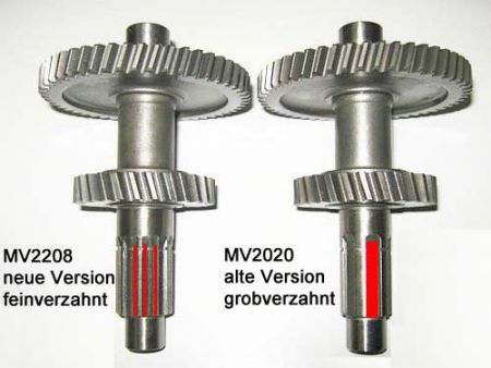 Ab 11.2008 wurden bei der MXU250S nur noch feinverzahnte Zwischenwellen verbaut.